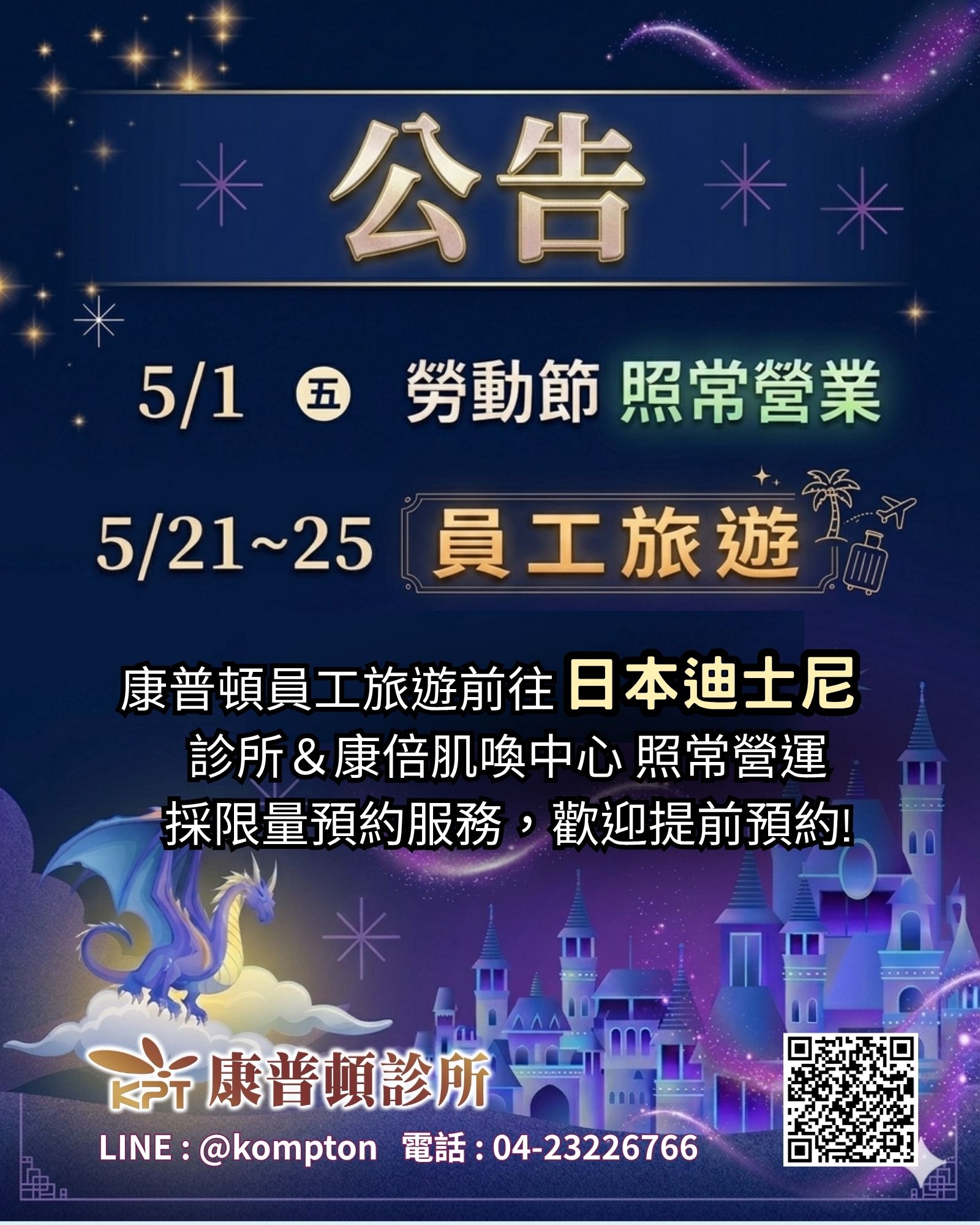 | 5/1勞動節、5/21-25員工旅遊照常營業