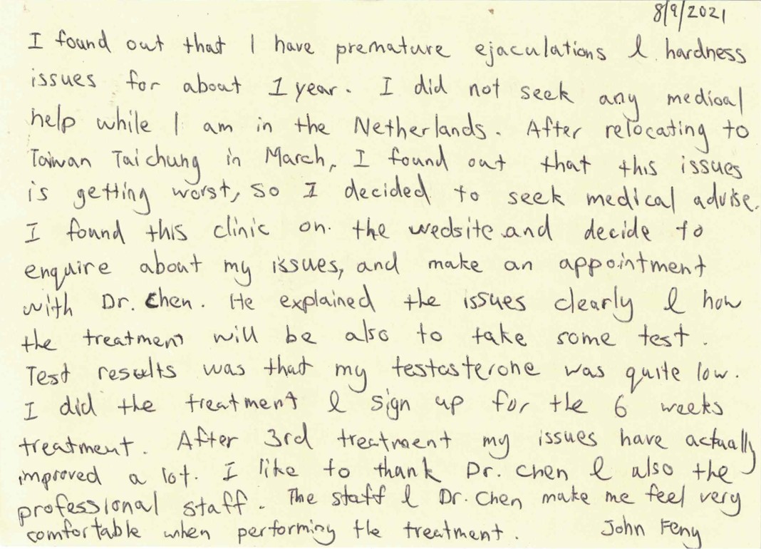 improved a lot. I like to thank Dr. Chen and also the professional staff.