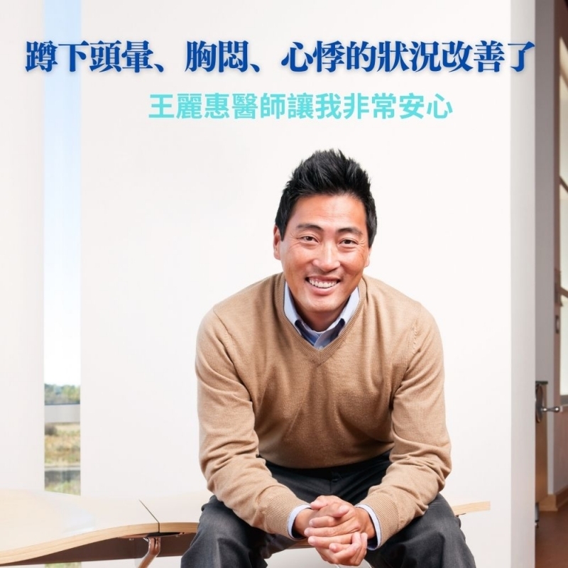 因為血壓不穩定而腦中風進了急診.結果發現我的右腦有栓塞情形,左腳走路不穩,深部靜脈栓塞,之後連右手右腳都無力,就在那時開始使用抗血栓藥物.接受了王醫師建議的心血管全套檢查,發現血管年齡