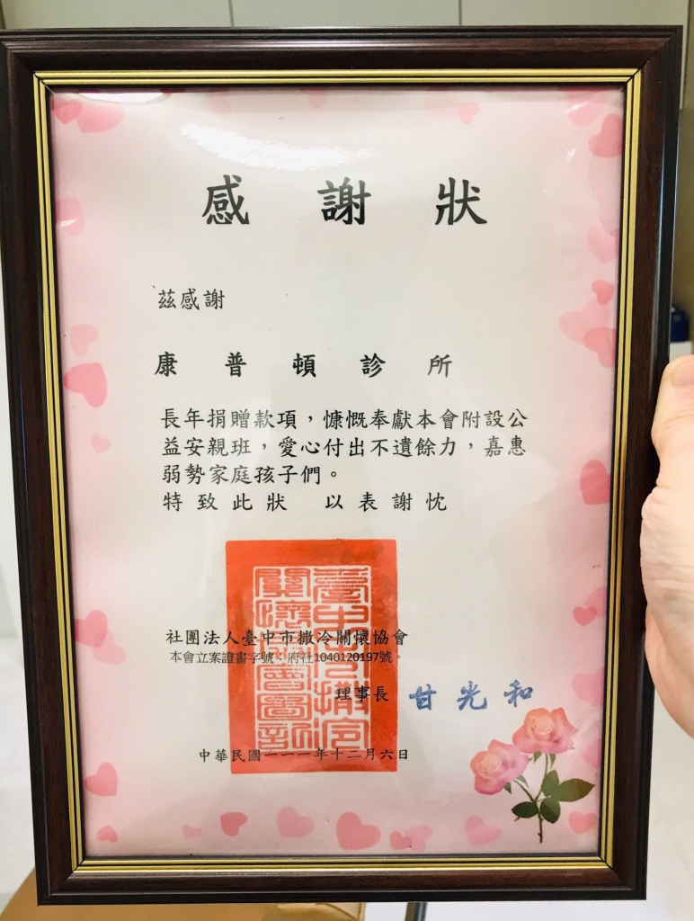 社團法人臺中市撒冷關懷協會感謝狀